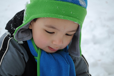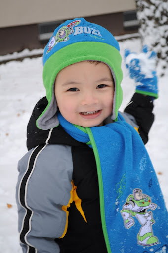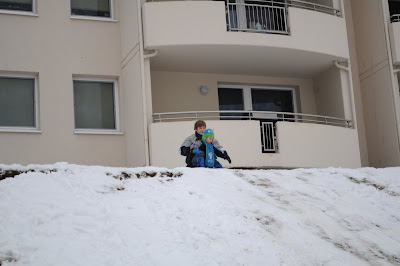 我們從美國回到德國的那一天,已經下了一堆雪,外面是一片白色的天地。隔了幾天,終於又下雪了。奕凱很興奮,因為這是他第一次看見下雪,所以,他對我說: