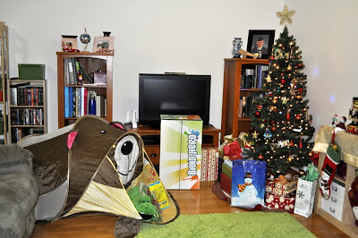 接下來,我和小藍先生就要把所有的禮物都拿出來擺在聖誕樹下,因為有"聖誕老公公"給的聖誕禮物,所以不能提早放 (其實我覺得很商業話,我一點也不喜歡聖誕老公公要給乖小孩禮物的這種傳統,爸媽除了要買自己給的還要買聖誕老公公給的禮物,難怪會破產。),而且奕凱也會忍不住去拆禮物。