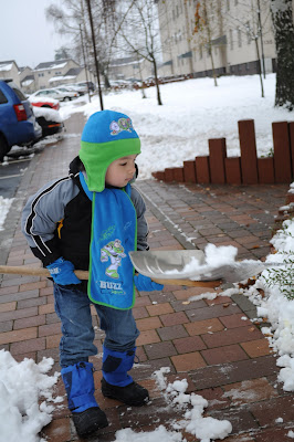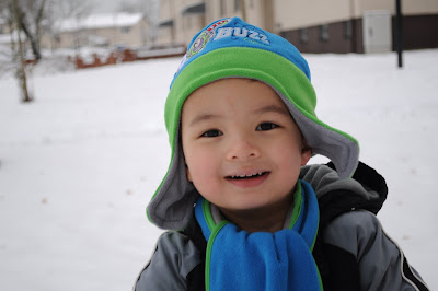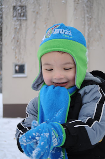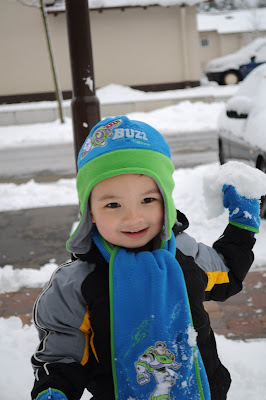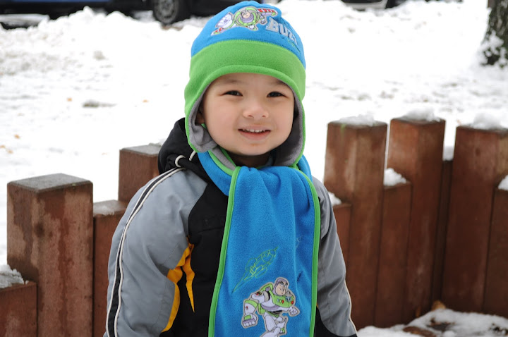 我們從美國回到德國的那一天,已經下了一堆雪,外面是一片白色的天地。隔了幾天,終於又下雪了。奕凱很興奮,因為這是他第一次看見下雪,所以,他對我說: